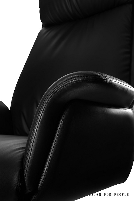 * Skóra naturalna w miejscu styczności użytkownika z fotelem, tył oparcia, spód i boki siedziska tapicerowane eko-skórą PU
