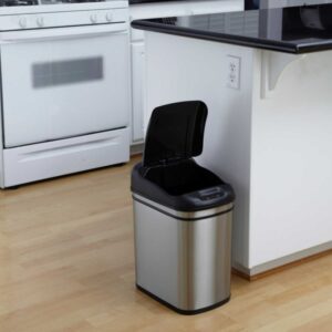 W momencie zbliżenia dłoni albo innych obiektów w odległości ok. 10 cm nad czujnik podczerwieni umieszczony z przodu pokrywy kosza, kosz otworzy się automatycznie oraz zamknie po wrzuceniu odpadków do jego wnętrza.Kiedy chcesz wyrzucić odpadki normalnie musisz dotykać pokrywy kosza na śmieci albo ją otwierać za pomocą nożnego przycisku. Czyli trzeba dotykać pojemnik z odpadami albo ręką albo nogą. Na szczęście firma NINE STARS po długoletnich badaniach wynalazła i wprowadziła na rynek inteligentny kosz na śmieci otwierany i zamykany poprzez mechanizm uruchamiany źródłem czujnika podczerwieni. Teraz możemy wyrzucać odpadki nie dotykając kosza, który jest zwykle siedliskiem wielu bakterii.