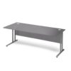 Prosty blat wykonany jest z laminatu o wytrzymałej powierzchni, którą można łatwo wyczyścić. Biurko umożliwia poprowadzenie okablowania poprzez dwa przepusty w blacie, dzięki czemu można łatwo schować kable i uniknąć bałaganu. Biurko jest wyposażone w panel maskujący, który ułatwia umieszczenie mebla w dowolnym miejscu w pomieszczeniu. Rama w kształcie litery L zapewnia dodatkową stabilność i została pomalowana proszkowo na stonowany odcień szarości. Blat dostępny jest w kilku wersjach kolorystycznych, dzięki czemu z łatwością dopasujesz go do pozostałych mebli.