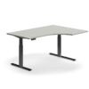 Biurko narożne z elektryczną regulacją wysokości i profilowanym blatem, z możliwością odwrócenia do ustawienia po prawej lub lewej stronie. Biurko charakteryzuje się szerokim zakresem regulacji wysokości, co zapewnia dużą elastyczność. Rama w kształcie litery T z mechanizmem antykolizyjnym, który zapobiega obrażeniom spowodowanym zakleszczeniem. Szybko i łatwo zmieniaj swoją pozycję roboczą dzięki biurku umożliwiającemu pracę na stojąco QBUS. Stojąca pozycja robocza to prosty, ale skuteczny sposób na poprawę samopoczucia i zmniejszenie ryzyka kontuzji pleców i szyi.