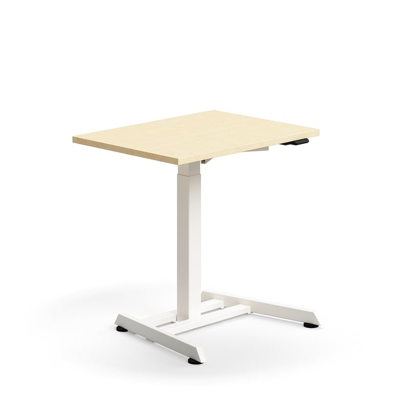 Biurko z regulacją wysokości QBUS, na filarze, 800×600 mm, biała rama, brzoza