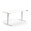 Biurko z regulacją wysokości QBUS, z wcięciem, 1600×800 mm, biała rama, jasnoszary