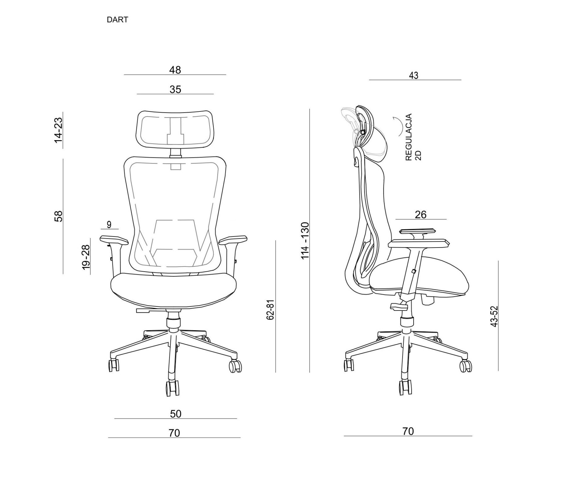 – Mechanizm SYNCHRON (HF009A) z systemem anti-shock oraz funkcją wysuwu siedziska – za dodatkową opłatą