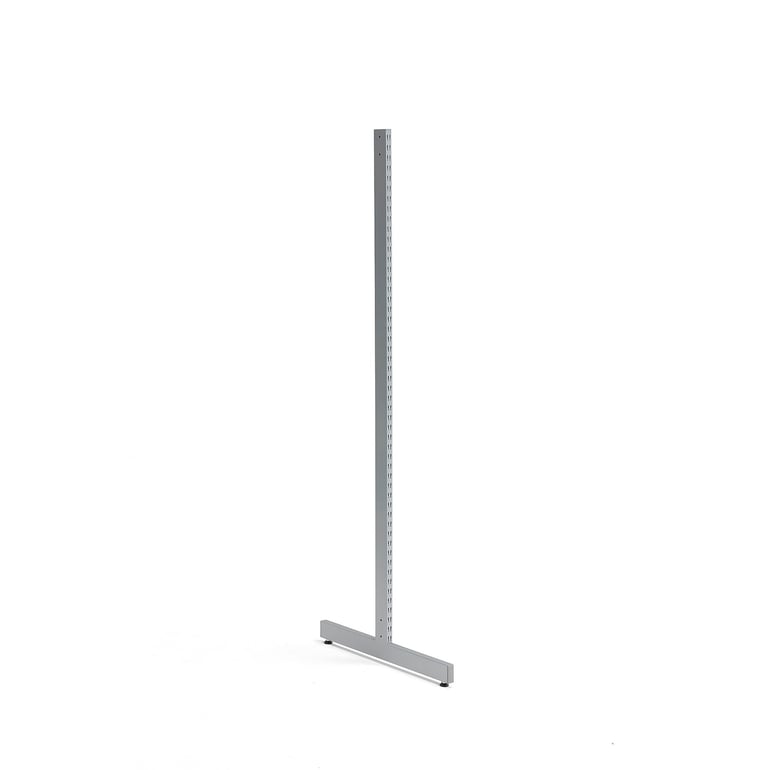 Rama T została wykonana z lakierowanej blachy stalowej. Składa się ze słupka z perforacją po obu stronach. Umożliwia stworzenie dwustronnego rozwiązania do przechowywania, które zapewnia oszczędność miejsca. Akcesoria można łatwo zamontować na dowolnej wysokości, zawieszając je na perforacjach. Równie łatwo można akcesoria przemieszczać dla pełnej wygody i optymalizacji. Rama T posiada dwie regulowane stopki, które zapewniają stabilność nawet na nierównych podłożach. Dodaj dwa stężenia w każdej sekcji (sprzedawane osobno).