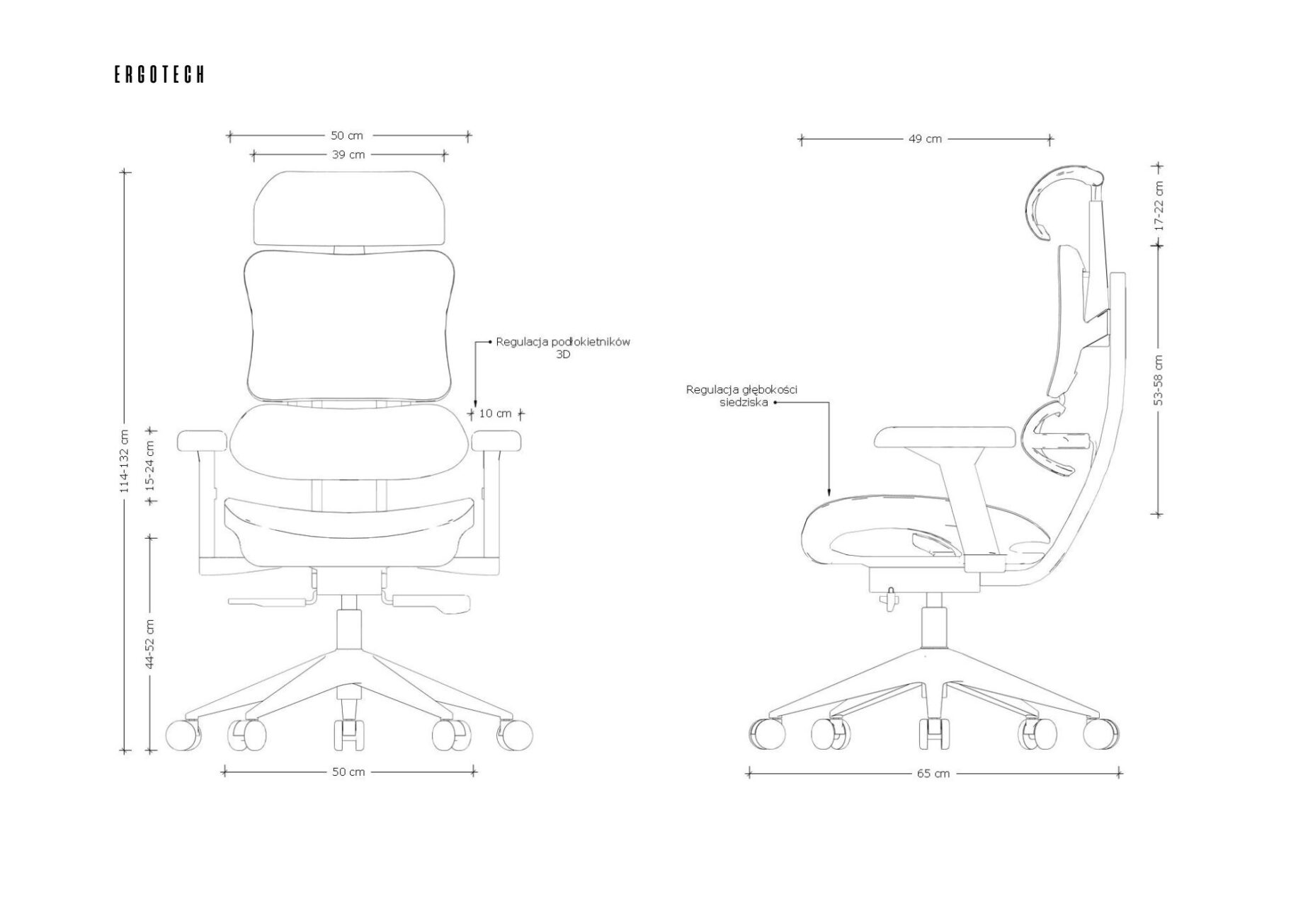 Wielogodzinna praca przy komputerze lub biurku bardzo szybko kończy się bólem pleców, głowy, skurczami nóg. Fotel ergonomiczny Ergotech to najlepsze rozwiązanie dla osób pracujących w pozycji siedzącej oraz uczących się przy biurku. Regulowane podłokietniki można ustawiać w każdym kierunku: góra-dół i przód-tył, można je także rozchylać na boki, dzięki czemu dopasujemy go do każdej osoby.