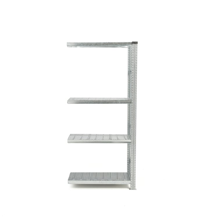 Moduł dodatkowy regału na chemikalia BLEND. Wyposażony w ramę końcową, perforowane półki i tacę ociekową. Drenaż wszystkich półek 50%. Ocynkowany moduł dodatkowy, który pozwala zwiększyć szerokość rozwiązania do przechowywania chemikaliów zgodnie z potrzebami. Rama dostarczana jest w stanie zmontowanym. Półki można zawiesić na dowolnej wysokości ramy, a drugi koniec zamocować do słupka modułu podstawowego. Istnieje możliwość dodania dowolnej liczby modułów dodatkowych w celu poszerzenia regałów. Moduły są przeznaczone do montażu bezśrubowego.