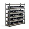 Ramę końcową modułu dodatkowego można zakotwić do podłoża. Prezentowany moduł posiada cztery perforowane półki, które przepuszczają ciecze. Taca ociekowa pod półką dolną efektywnie zbiera płyny. Można dodać półkę i tacę ociekową (sprzedawane oddzielnie, patrz akcesoria).