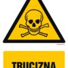 Znak „Trucizna” należy do znaków ostrzegawczych z opisem. Składa się zarówno z piktogramu, jak i napisu, dzięki czemu jest łatwiejszy w interpretacji. Na prostokątnym białym tle znajduje się trójkątny znak z żółtym tłem oraz czarnym obramowaniem i piktogramem czaszki symbolizującej truciznę. Pod nim widoczny jest czarny napis „Trucizna”. Znak przeznaczony jest do oznaczania substancji, których spożycie lub bezpośredni kontakt z nią stanowi zagrożenie dla zdrowia i życia człowieka. Wymusza konkretne zachowanie i zakazuje osobom do tego nieupoważnionym kontaktu z substancją. Znak „Trucizna” występuje w wielu rozmiarach do wyboru: 5 x 7,5 cm, 10 x 15 cm, 15 x 22,5 cm, 20 x 30 cm, 25 x 37,5 cm, 30 x 45 cm, 35 x 52,5 cm, 50 x 75 cm i 70 x 105 cm. Może być wykonany na: • Folii samoprzylepnej (również wariant fotoluminescencyjny) • Folii podłogowej (również wariant fotoluminescencyjny • Płycie sztywnej (również wariant fotoluminescencyjny • Płycie TD fotoluminescencyjnej