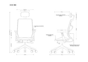 – Zagłówek, oparcie i siedzisko tapicerowane w całości siatką lub tapicerowane siatką i tkaniną BL na siedzisku lub w całości tapicerowane tkaniną SM