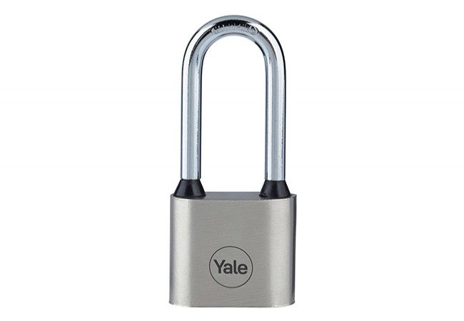 Kłódka dyskowa żeliwna YALE Y112/50/165/1 z długim pałąkiem, srebrna