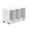 Trwały moduł do przechowywania z laminatu w kolorze: buku, brzozy oraz białym z blokowanymi kółkami. Dodaj plastikowe pojemniki w różnych rozmiarach. Ida to prosty i trwały regał z poręcznymi pojemnikami, które będą bardzo przydatne do przedszkola. Moduł wykonany jest z wytrzymałego i łatwego w pielęgnacji laminatu w kolorze: buku, brzozy i białym. Dodaj solidne pojemniki plastikowe, dostępne w trzech różnych rozmiarach. Pozwoli to dostosować system przechowywania do poszczególnych potrzeb w przedszkolach. Regał Ida ma stałe uchwyty, co ułatwia dzieciom wyciągnięcie lub wsunięcie pojemnika. Moduł zawiera cztery duże koła, dwa mają hamulce dzięki czemu można go łatwo przemieszczać oraz unieruchomić. Z regałem Ida można tworzyć niestandadowe rozwiązania dla przedszkoli aby codzienne czynności były jeszcze łatwiejsze!