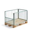 Trwała rama z galwanizowanej stali o wytrzymałej powierzchni. Ściany z siatki stalowej zapewniają dobry przegląd zawartości. Z narożnikami do sztaplowania kołnierze można ustawiać w stos nawet w stanie załadowanym. Na jednym z krótszych boków znajduje się furtka, która zapewnia łatwy dostęp do zawartości. Ułatwia załadunek i rozładunek towarów.