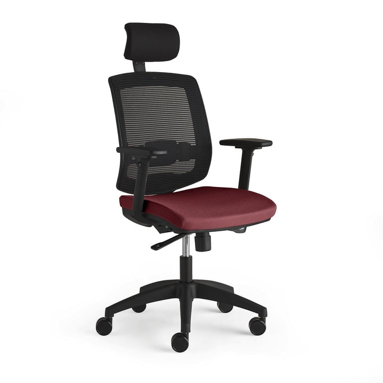 Podpracie lędźwi można regulować w górę i w dół. Zagłówek z regulacją kąta nachylenia dla optymalnego podparcia pleców. Podłokietniki regulowane w trzech kierunkach: góra/dół, przód/tył i kąt nachylenia.