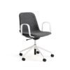 Stylowy fotel konferencyjny na kółkach, pokryty tkaniną, z niskim oparciem i podłokietnikami. Dzięki kółkom można go łatwo przemieszczać przy stole konferencyjnym. Siedzisko można podnieść lub obniżyć, aby zapewnić optymalny komfort. Podłokietniki umożliwiają podparcie rąk. LANGLEY to seria krzeseł, które doskonale sprawdzą się zarówno w tradycyjnych środowiskach konferencyjnych, jak i w spotkaniach o bardziej swobodnej atmosferze. Ten model z niskim oparciem idealnie sprawdzi się w pomieszczeniach takich jak sale konferencyjne lub biura open-space.
