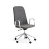 Stylowy fotel konferencyjny na kółkach, pokryty materiałem, z oparciem o średniej wysokości i podłokietnikami. Dzięki kołom można go łatwo przemieszczać przy stole konferencyjnym. Siedzisko można podnieść lub obniżyć, aby zapewnić optymalny komfort. Podłokietniki umożliwiają podparcie rąk. LANGLEY to seria krzeseł, które doskonale sprawdzą się zarówno w tradycyjnych środowiskach konferencyjnych, jak i w przypadku spotkań o bardziej swobodnej atmosferze. Ten model z oparciem o średniej wysokości idealnie nadaje się do stosowania w salach konferencyjnych lub wokół stołu w otwartym biurze.