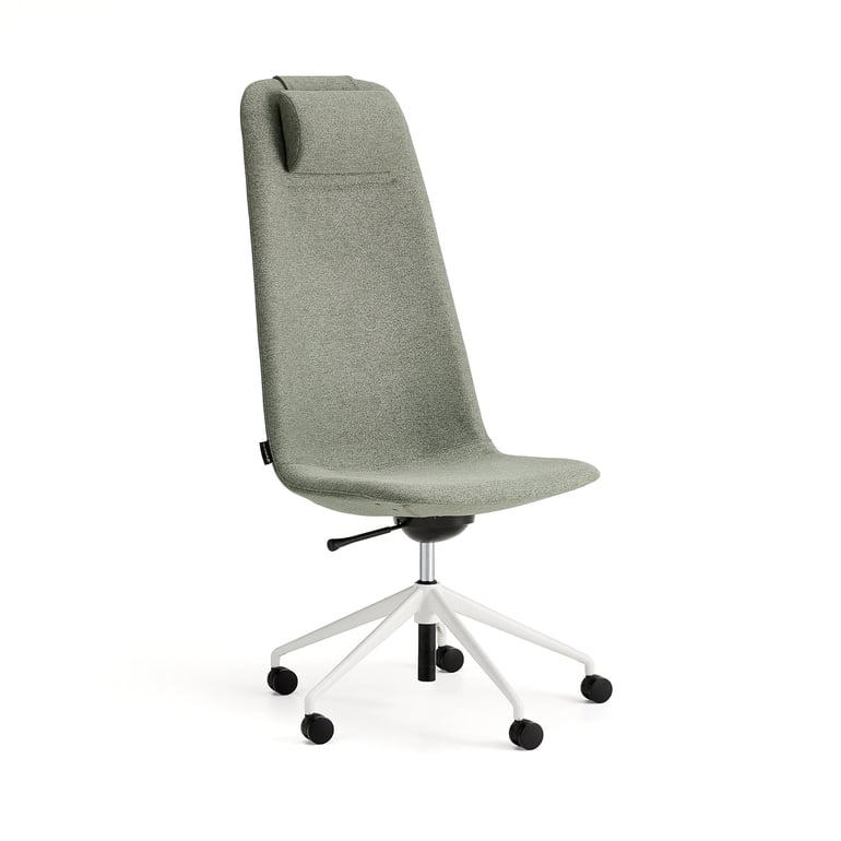 Stylowy fotel konferencyjny na kółkach, pokryty materiałem, z wysokim oparciem i wyściełanym zagłówkiem dla większego komfortu. Dzięki kółkom można łatwo ustawić krzesło przy stole konferencyjnym. Siedzisko z regulacją wysokości. LANGLEY to seria uniwersalnych krzeseł, które sprawdzą się zarówno w tradycyjnych środowiskach konferencyjnych, jak i podczas spotkań w bardziej swobodnej atmosferze. Ten model z wysokim oparciem sprawdzi się na przykład podczas dużych spotkań w salach konferencyjnych lub wideokonferencji w mniejszych pomieszczeniach.