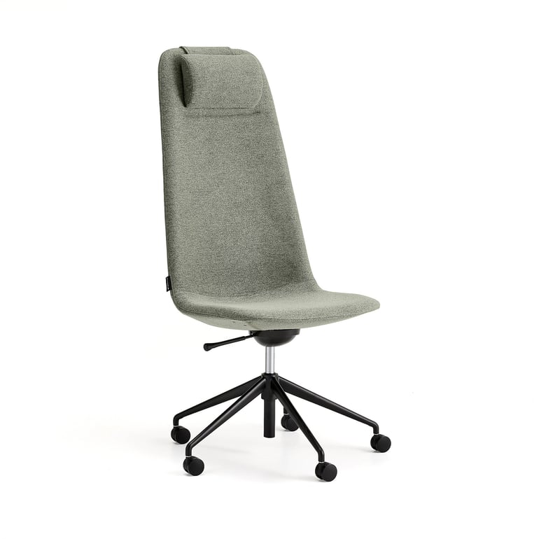 Stylowy fotel konferencyjny na kółkach, pokryty materiałem, z wysokim oparciem i wyściełanym zagłówkiem dla większego komfortu. Dzięki kółkom można łatwo ustawić krzesło przy stole konferencyjnym. Siedzisko z regulacją wysokości. LANGLEY to seria uniwersalnych krzeseł, które sprawdzą się zarówno w tradycyjnych środowiskach konferencyjnych, jak i podczas spotkań w bardziej swobodnej atmosferze. Ten model z wysokim oparciem sprawdzi się na przykład podczas dużych spotkań w salach konferencyjnych lub wideokonferencji w mniejszych pomieszczeniach.