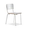 Krzesło jest wyposażone w solidną ramę z rur stalowych z trwałą powłoką proszkową. Siedzisko i oparcie wykonane są z laminatu wysokociśnieniowego, trwałego i łatwego w pielęgnacji materiału, który doskonale sprawdza się w trudnym środowisku szkolnym.