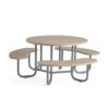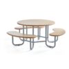 Ława ze stałymi siedziskami i okrągłym stołem, które razem tworzą idealne miejsce do siedzenia. Wszystkie elementy ławy posiadają wytrzymałe powierzchnie i są doskonałym rowiązaniem na korytarz i do przestrzeni wspólnych. Nasza okrągła ława to przyjemne miejsce do siedzenia na korytarzu, w pokojach socjalnych, bibliotekach, strefach wejściowych itp. Zachęca do interakcji i stanowi naturalne miejsce zgromadzeń.