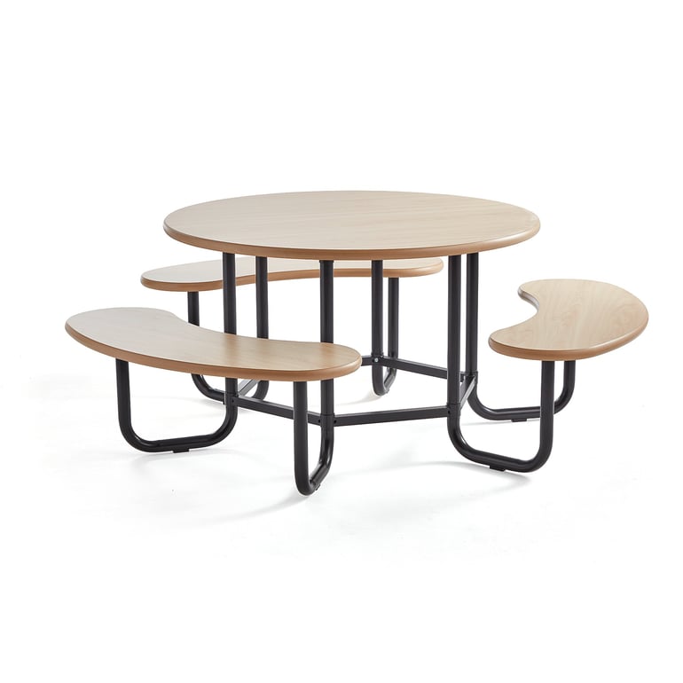 Ława ze stałymi siedziskami i okrągłym stołem, które razem tworzą idealne miejsce do siedzenia. Wszystkie elementy ławy posiadają wytrzymałe powierzchnie i są doskonałym rowiązaniem na korytarz i do przestrzeni wspólnych.