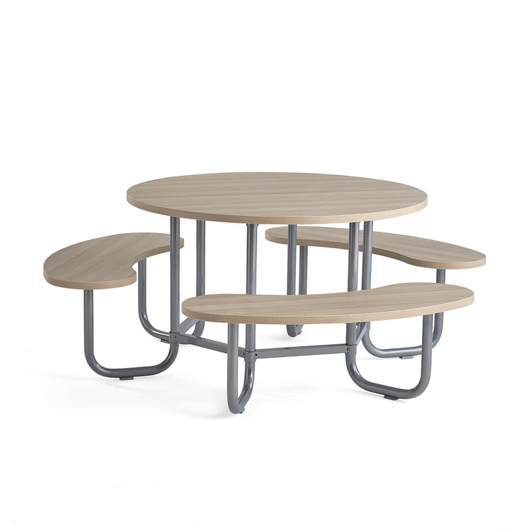 Ława ze stałymi siedziskami i okrągłym stołem, które razem tworzą idealne miejsce do siedzenia. Wszystkie elementy ławy posiadają wytrzymałe powierzchnie i są doskonałym rowiązaniem na korytarz i do przestrzeni wspólnych. Nasza okrągła ława to przyjemne miejsce do siedzenia na korytarzu, w pokojach socjalnych, bibliotekach, strefach wejściowych itp. Zachęca do interakcji i stanowi naturalne miejsce zgromadzeń.