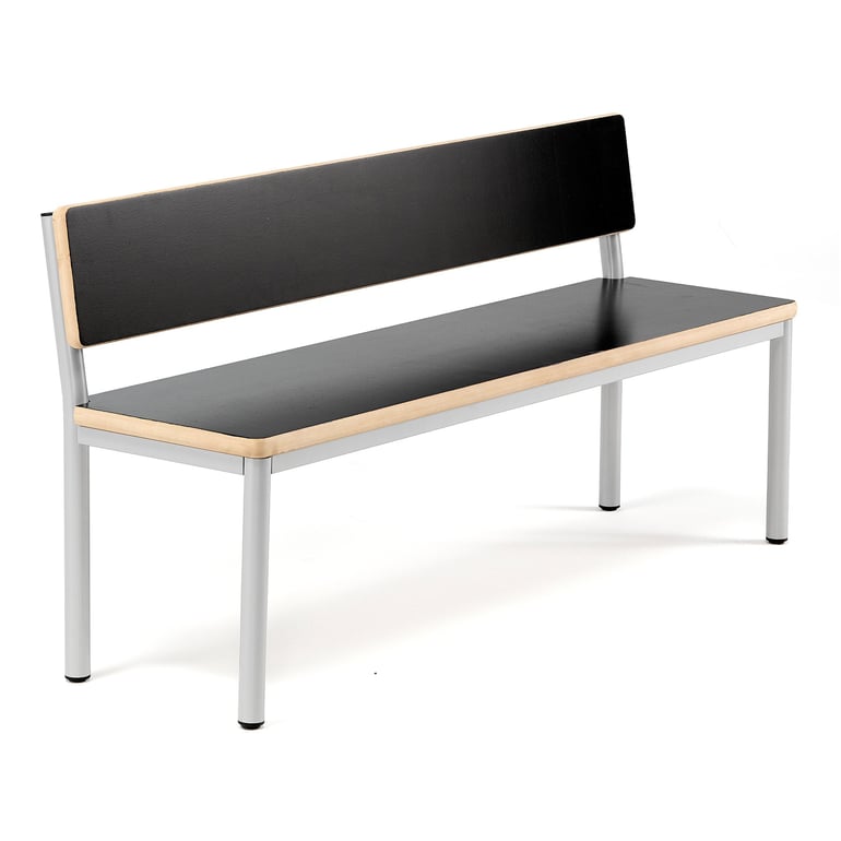 Ławka z oparciem ze wzmocnioną ramą z rur stalowych, regulowanymi stopkami i wytrzymałym siedziskiem. Idealne rozwiązanie na korytarz i do przestrzeni wspólnych. Dodaj stół lub ławkę z tej samej serii i stwórz funkcjonalne miejsce spotkań. Solidna ławka na korytarz, do przestrzeni wspólnych i do szkół.