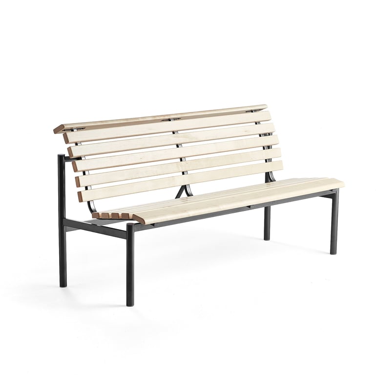 Ławka drewniana AURORA, 1800x700x900 mm, rama czarny, brzoza