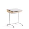 Biurko szkolne z pokrywą wyposażoną w membranę tłumiącą dźwięk, która przyczynia się do stworzenia przyjemnego otoczenia akustycznego. Pokrywa jest nachylona pod kątem około 5°. Można go unieść na płasko, korzystając ze wspornika znajdującego się wewnątrz. Biurko posiada mechanizm regulacji wysokości i jest wyposażone w dwa haczyki. Klasyczne biurko szkolne z powłoką z laminatu wysokociśnieniowego pochłaniającą dźwięk na pokrywie, zapewniającą lepsze warunki akustyczne w klasie.
