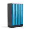 Szafa schowkowa z półokrągłymi drzwiami i podstawą w formie cokołu. Każda szafka posiada zabezpieczenie przed szerokim otwarciem i kieszeń w drzwiach. Otwory wentylacyjne w górnej i dolnej części szaf. Szafy dostarczamy bez zamków.​ Unikalne, eleganckie szafy schowkowe, które nadają przebieralni ekskluzywny wygląd. Półokrągłe drzwi pokryte metalizowanym lakierem sprawiają, że szafy prezentują się nowocześnie i stylowo. Doskonały wybór do recepcji, szatni, przebieralni i centrów sportowych. Nasze szafy skutecznie przechowają odzież na małej przestrzeni. Są idealnym wyborem, gdy wiele osób korzysta z jednej szatni. Doskonale sprawdzą się w przebieralniach na basenach, w klubach sportowych, firmach, hotelach itp. Można je również umieścić w strefie wejściowej, gdzie zapewnią elegancką przestrzeń na odzież i cenne przedmioty należące do odwiedzających.