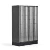 Metalowa szafa ubraniowa CURVE, na cokole, 4×4 drzwi, 1890x1200x550 mm, niebieski