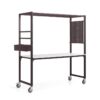 Powierzchnia robocza ma dwie ramy końcowe i stężenie. Stężenie można ozdobić sztucznymi roślinami lub zawiesić na nim oświetlenie, aby stworzyć bardziej przyjazną atmosferę. Na ramach końcowych możesz umieścić tablicę suchościeralną, tablicę ogłoszeń, panele narzędziowe, rośliny lub schowek na artykuły biurowe, które warto mieć pod ręką.