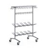 Wieszak jest wyposażony w koła, dzięki czemu można go łatwo umieścić w dowolnym miejscu. Dwa koła można zablokować, co umożliwia utrzymanie wieszaka w jednym miejscu.