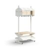 Stojak na nakrycia głowy i buty jest dostarczany w komplecie z przegrodami, podwójnymi haczykami, górną półką, ławką i półką na buty. Półka na buty została wykonana z okrągłych rur stalowych, co zapobiega zbieraniu się kurzu. W części dolnej znajduje się ociekacz, który zbiera piach i wodę z obuwia. Ławka jest idealna do zdejmowania i zakładania butów przez dzieci.