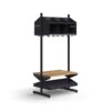 Stojak na nakrycia głowy i obuwie jest dostarczany w komplecie z przegrodami, podwójnymi haczykami, górną półką, ławką i półką na buty. Półka na buty została wykonana z okrągłych rur stalowych, co zapobiega zbieraniu się kurzu. W części dolnej znajduje się ociekacz, który zbiera piach i wodę z obuwia.