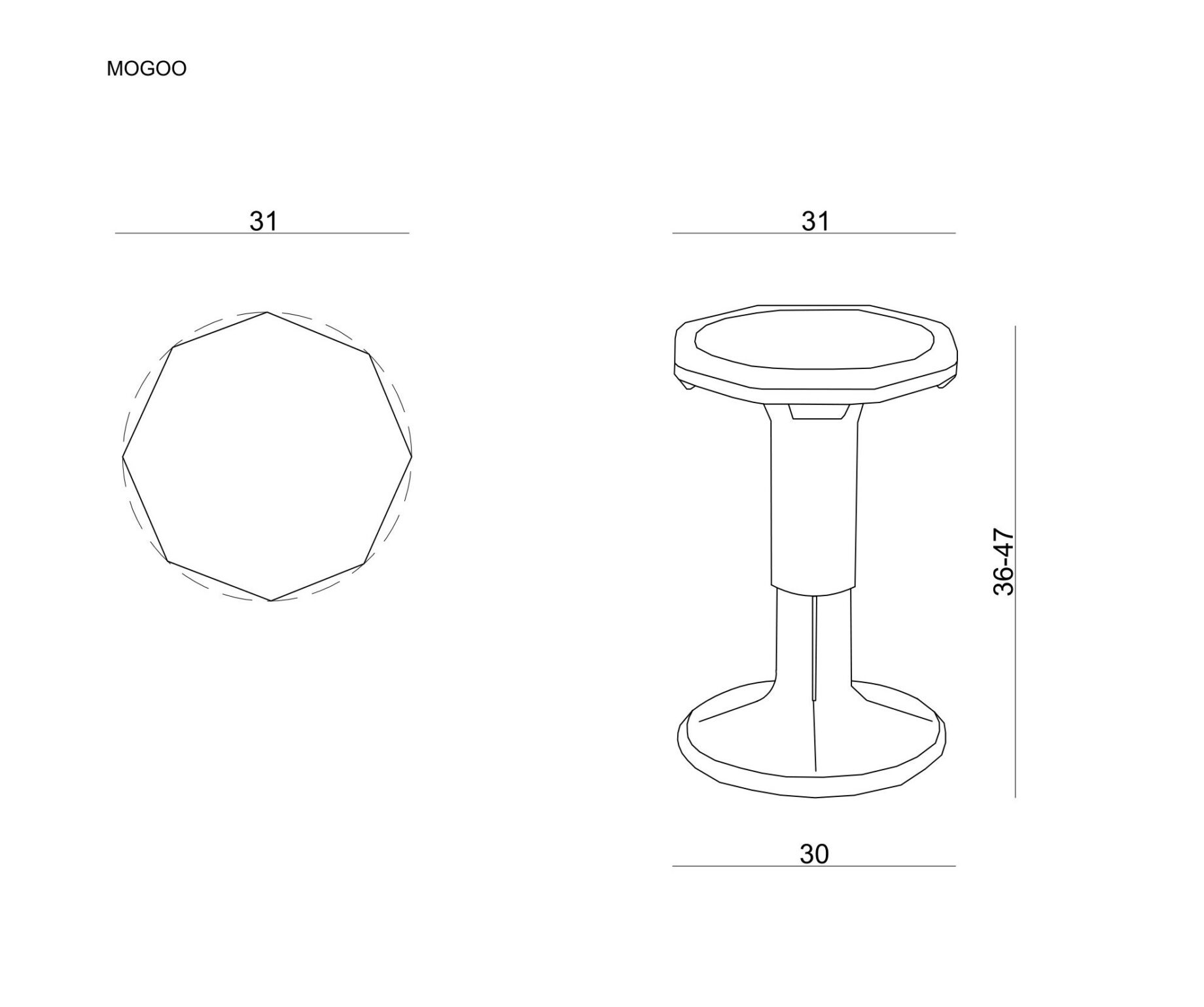 – Siedzisko w kształcie ośmiokąta