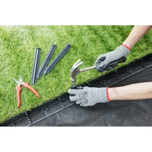 Obrzeże trawnikowe geoBORDER przytwierdza się do podłoży miękkich jak trawnik, ziemia, piasek kotwami z tworzywa, do podłoży twardych jak glina, tłuczeń można zastosować metalowe gwoździe.