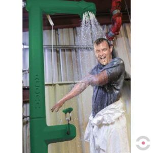 - Misa natrysku awaryjnego wykonana z zielonego tworzywa ABS, zapewnia wypływ wody odpowiednio ukształtowany, obejmujący swym zasięgiem całą postać