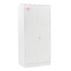 Zamykana szafa do przechowywania chemikaliów z izolacją przeciwogniową między dwiema płytami stalowymi w drzwiach (tzw. drzwi dwuścianowe), oraz w ramie, dnie oraz górnej części korpusu. Pokryte ognioodporną powłoką proszkową. Wyposażona w kanał wentylacyjny, wyjmowany przedni panel cokołu oraz półki z podniesionymi krawędziami i uszczelnionymi narożnikami. Ta zamykana szafa na chemikalia została przetestowana pod kątem wentylacji. Wyposażona w kanał wentylacyjny wzdłuż lewego narożnika, z regulowanymi otworami wentylacyjnymi u góry i u dołu. Pomiędzy nimi znajdują się mniejsze punkty wyciągowe, które zapewniają wentylację przestrzeni między wszystkimi półkami. Szafa pomyślnie przeszła testy w zakresie stabilności i trwałości. Jest bardzo solidnie wykonana i posiada trwałą powierzchnię.