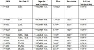 - Dodatkowo można użyć ogrzewacza dna beczki lub dekla (do kupienia osobno)