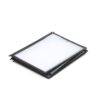 Okładki na dokumenty do uchwytów, stojaków oraz ramion na okładki. Sprzedawane w opakowaniach po 10 sztuk. Ramki sprzedawane oddzielnie. Okładki pozwalają na dobry ogląd najczęścniej używanych dokumentów. Spisy telefonów, cenniki itp. są w nich chronione przed zabrudzeniem i zawsze w zasięgu reki. Otwarcie z dwóch stron zapewnia łatwy dostęp i umożliwia umieszczenie dwóch różnych dokumentów w jednej okładce. Łatwa i szybka wymiana dokumentów, gdy zajdzie potrzeba. Okładki wykonane z 100% polipropylenu, który jest materiałem wysokiej jakości, przyjaznym dla środowiska. Bardzo trwały – nie odkształca się, nie blednie i zachowuje transparentność przez wiele lat. Okładki są elastyczne i gwarantują wytrzymałość i długowieczność, nawet w trudnych środowiskach.
