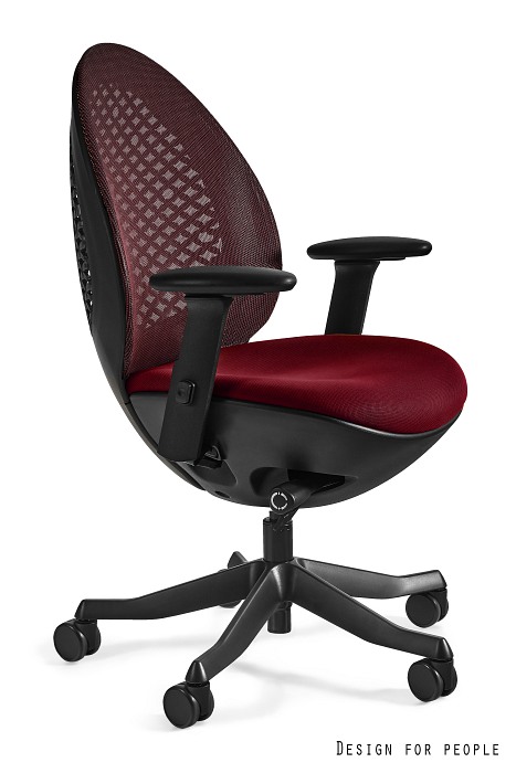 FOTEL BIUROWY OVO – CZARNY, SIATKA NW44 DEEPRED/TKANINA BL402 DEEPRED Unique