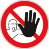 Znak zakazu z symbolem informującym o zakazie wstępu dla osób nieuprawnionych. Zgodny z normą EN ISO 7010. Oznaczenia zakazu pomagają zmniejszyć ryzyko wypadków w zakładach pracy, na placach budowy itp. Prezentowany znak informuje o zakazie wstępu dla osób nieuprawnionych.