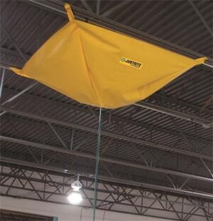 Trwała, odporna na przebicie, wodoszczelna płachta wykonana z materiału powlekanego PCV, przeznaczona do zbierania i odprowadzania do pojemników lub kanalizacji wody cieknącej z dachu lub z podwieszonych rurociągów. Mocowana, przy wykorzystaniu nabitych oczek za pomocą lin bądź pasów do belek konstrukcyjnych. Stanowi skuteczne zabezpieczenie maszyn i urządzeń instalowanych pod cieknącym dachem. W celu opróżnienia zawartości podłącza się zwykły wąż ogrodniczy, którym można odprowadzić wodę do bezpiecznego miejsca. Wymiary po rozłożeniu (wewnętrzne) S*D 4600*4600 mm, wymiary po (złożeniu) S*D*W 457*406*254 mm, waga 15,9 kg, kolor żółty.
