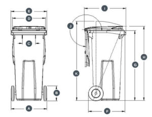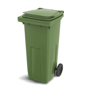 Mobilne plastikowe kontenery na odpady segregowane o pojemności 120 litrów, wyposażone w kółka ułatwiające przemieszczanie. Posiadają różne kolory, co ułatwia segregację odpadów. Wykonane z trwałego polietylenu wysokiej gęstości, odpornego na promieniowanie UV, deszcz oraz roztwory kwaśne i alkaliczne.