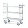Kompaktowa platforma transportowa pokryta gumą. Koła skrętne. Wszechstronny wózek do przewozu maszyn i innych ciężkich ładunków. Wózek wykonano ze stali lakierowanej proszkowo na kolor niebieski. Posiada cztery elastyczne koła skrętne z nylonowymi oponami. Produkty wyposażono w nylonowe koła, które wytrzymują duże obciążenia i są odporne na zużycie i uszkodzenia. Niski współczynnik tarcia na czystych i równych podłożach. Nylon jest odporny na wodę, oleje, rozpuszczalniki organiczne oraz zasady. Ryflowana gumowa platformasprawia, że ładunek nie zsuwa się z wózka podczas transportu.