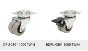 Podwójne koła z bieżnikiem poliuretanowym.