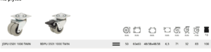 Średnica zastosowanego koła polipropylenowego wynosi 50 mm. W przypadku wersji z płytką jej wymiary zewnętrzne płytki to 60×60 mm. Mocowanie na otwór jest na śrubę M10. Istnieje możliwość dokupienia tulejki redukującej otwór do śruby M8.