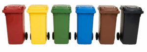 Pojemniki na odpady komunalne 240l przeznaczone do magazynowania odpadów selektywnie zebranych. Dostępne w różnych kolorach, które określają rodzaj gromadzonych odpadów.