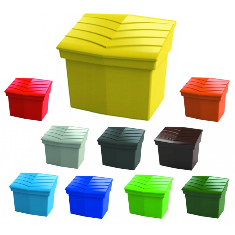 Pojemnik wykonany z tworzywa sztucznego PEHD. Odporny na warunki atmosferyczne i środki chemiczne w tym kwasy, zasady. Może być używany do przechowywania piasku i soli podczas zimy.