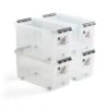 Pojemniki z tworzywa sztucznego wyposażone w pokrywy z zatrzaskiem. Nadają się do sztaplowania. Są dopuszczone do kontaktu z żywnością i można je użytkować w temperaturach od -40°C do +120°C. Pojemniki wykonano z przezroczystego polipropylenu dopuszczonego do kontaktu z żywnością.